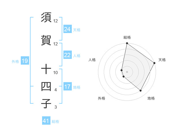 須賀 十四子さんを姓名の画数から五運を鑑定