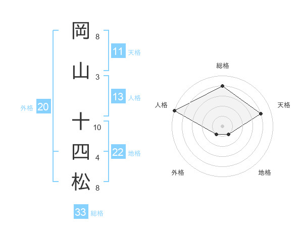 岡山 十四松さんを姓名の画数から五運を鑑定