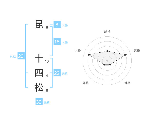 昆 十四松さんの天格は8画の4点!