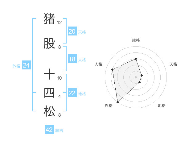 猪股 十四松さんを姓名の画数から五運を鑑定