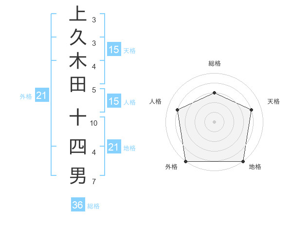 上久木田 十四男さんの外格は21画の5点!