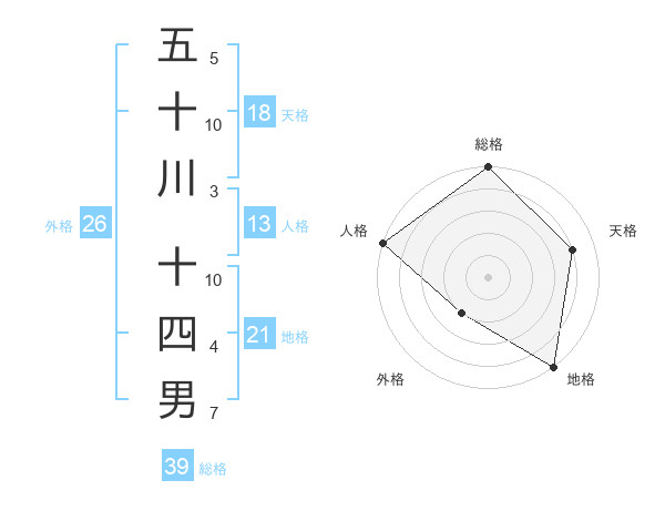 五十川 十四男さんを姓名の画数から五運を鑑定