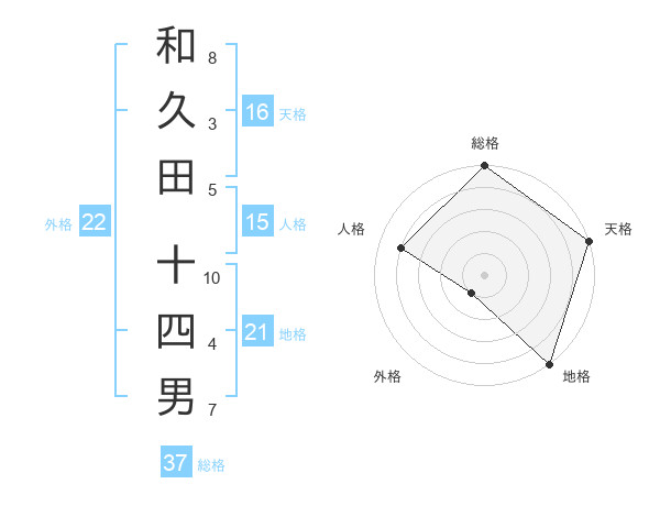 和久田 十四男さんを姓名の画数から五運を鑑定