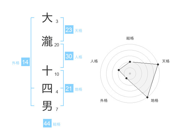 大瀧 十四男さんを姓名の画数から五運を鑑定