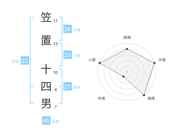 笠置 十四男さんを姓名の画数から五運を鑑定