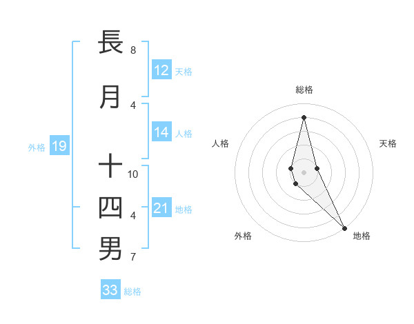 長月 十四男さんの地格は21画の5点!