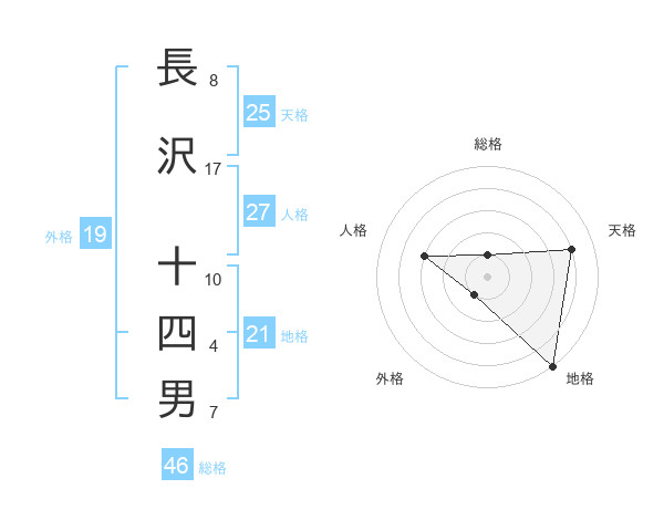 長沢 十四男さんを姓名の画数から五運を鑑定