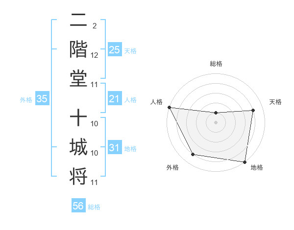 二階堂 十城将さんを姓名の画数から五運を鑑定