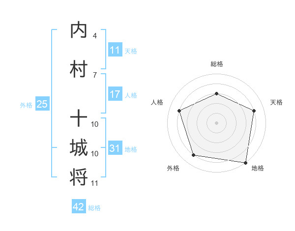 内村 十城将さんの総格は42画の3点!