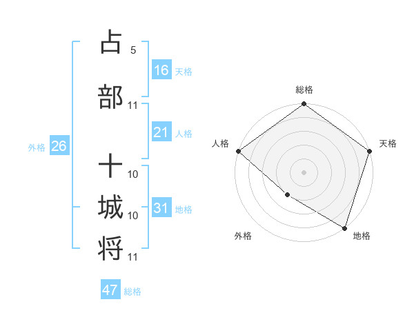 占部 十城将さんの総格は47画の5点!