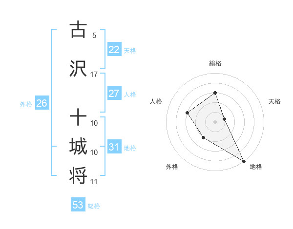古沢 十城将さんを姓名の画数から五運を鑑定