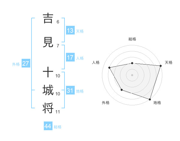 吉見 十城将さんを姓名の画数から五運を鑑定