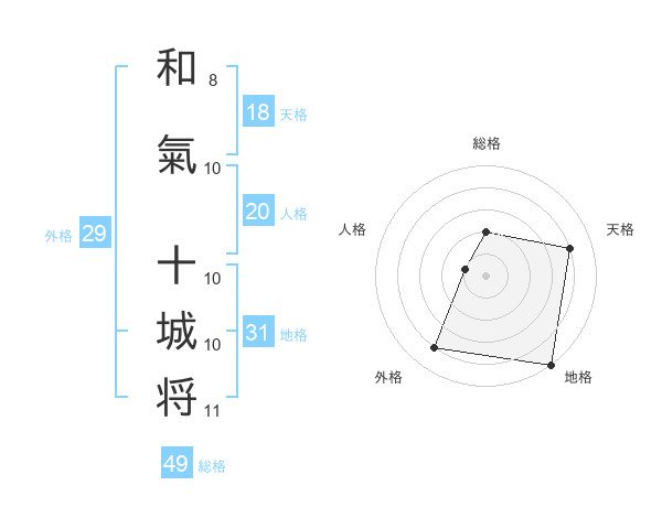 和氣 十城将さんを姓名の画数から五運を鑑定