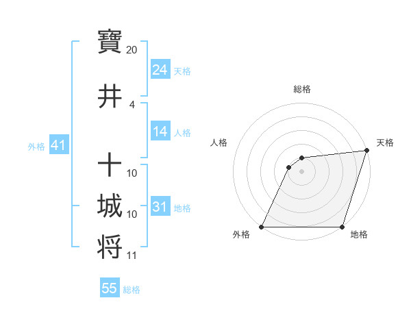 寶井 十城将さんを姓名の画数から五運を鑑定