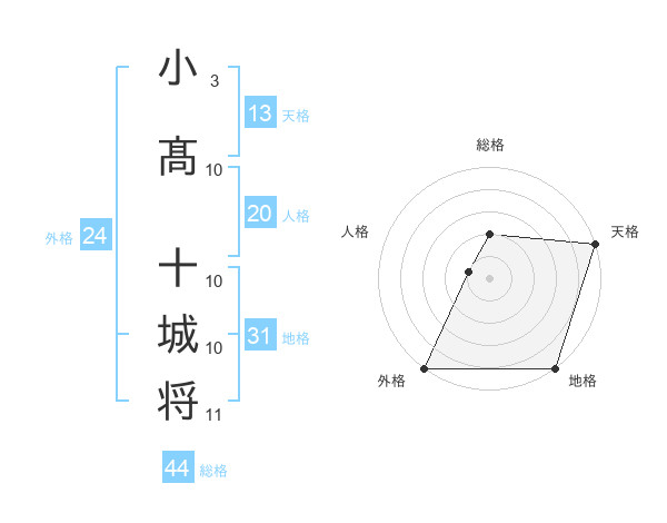 小髙 十城将さんの地格は31画の5点!
