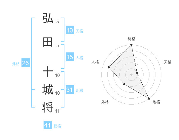 弘田 十城将さんを姓名の画数から五運を鑑定