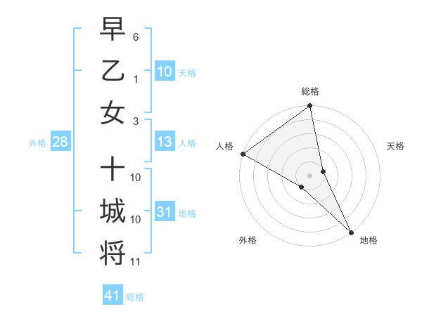 早乙女 十城将さんの総格は41画の5点!