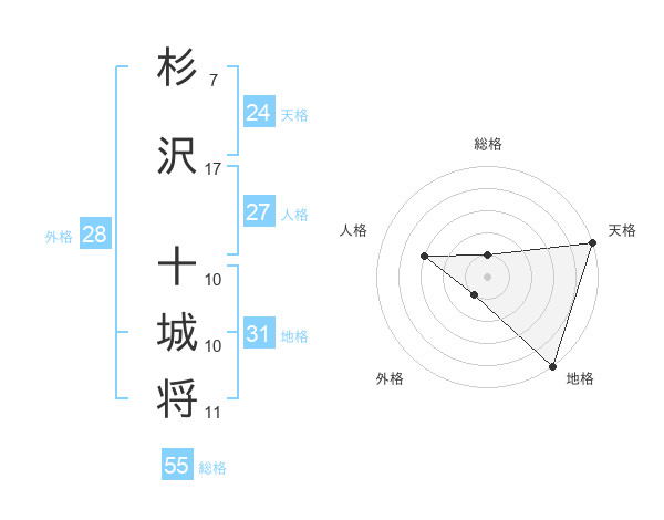 杉沢 十城将さんの天格は24画の5点!