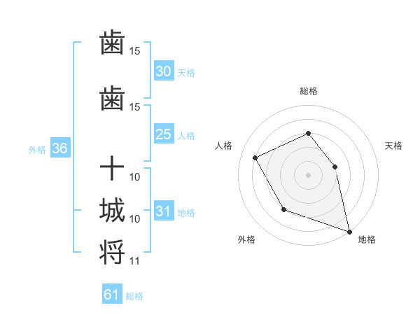 歯歯 十城将さんの総格は61画の3点!