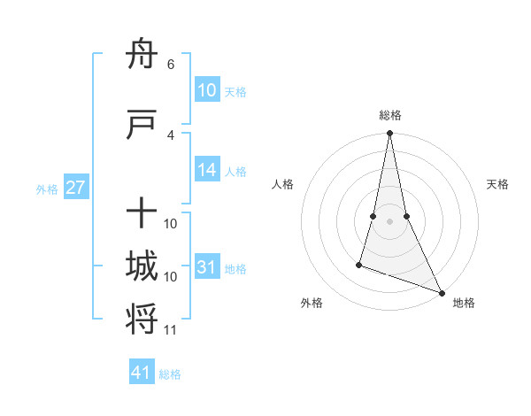 舟戸 十城将さんを姓名の画数から五運を鑑定