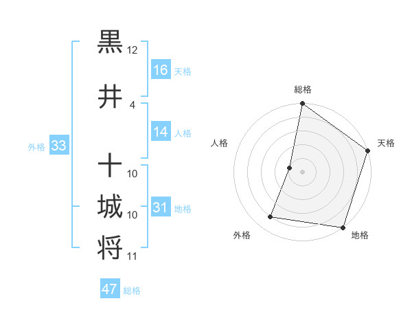 黒井 十城将さんを姓名の画数から五運を鑑定