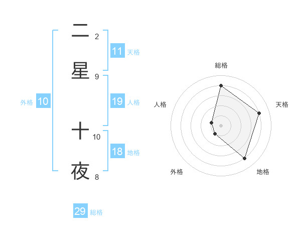二星 十夜さんの総格は29画の4点!