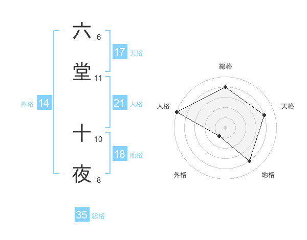 六堂 十夜さんを姓名の画数から五運を鑑定