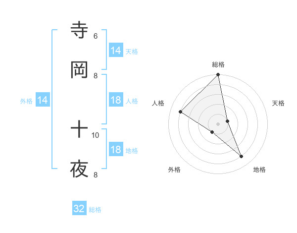 寺岡 十夜さんの天格は14画の1点!