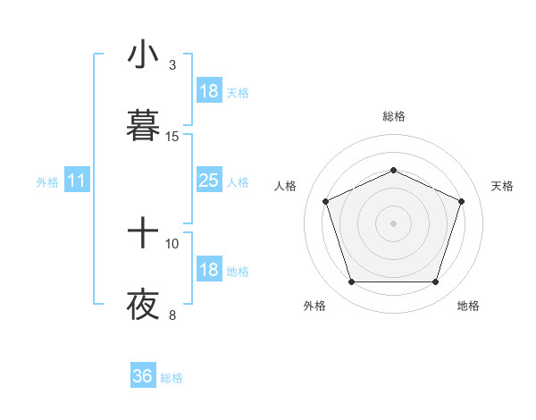 小暮 十夜さんを姓名の画数から五運を鑑定