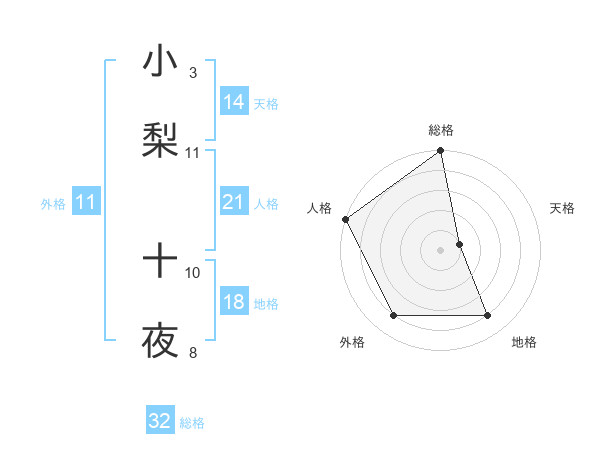 小梨 十夜さんの外格は11画の4点!