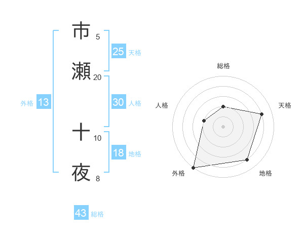 市瀬 十夜さんの外格は13画の5点!