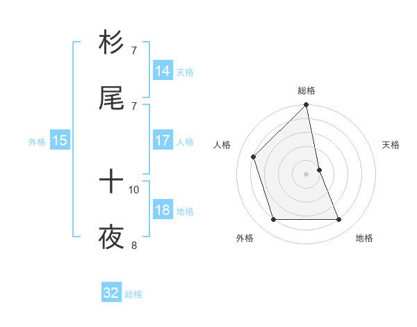 杉尾 十夜さんの総格は32画の5点!