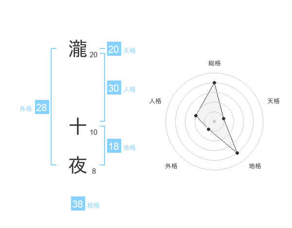 瀧 十夜さんを姓名の画数から五運を鑑定