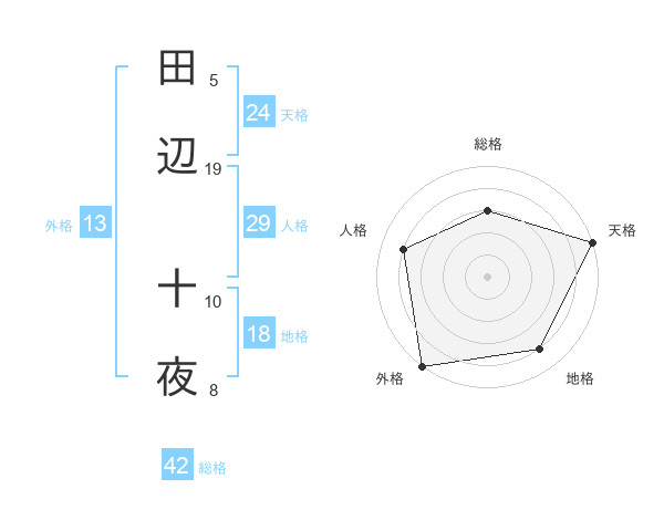 田辺 十夜さんを姓名の画数から五運を鑑定