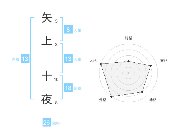矢上 十夜さんの外格は13画の5点!