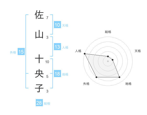 佐山 十央子さんを姓名の画数から五運を鑑定