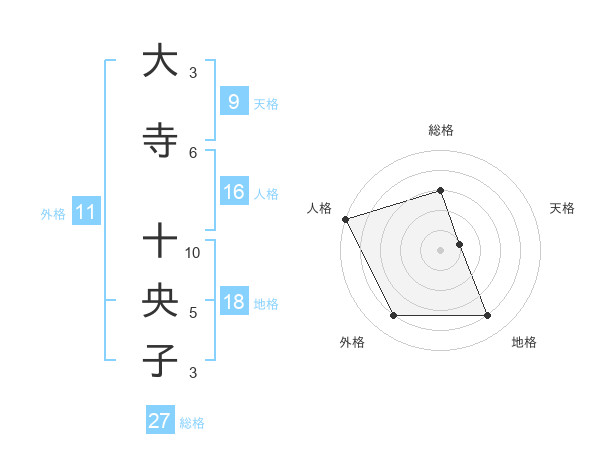 大寺 十央子さんの総格は27画の3点!