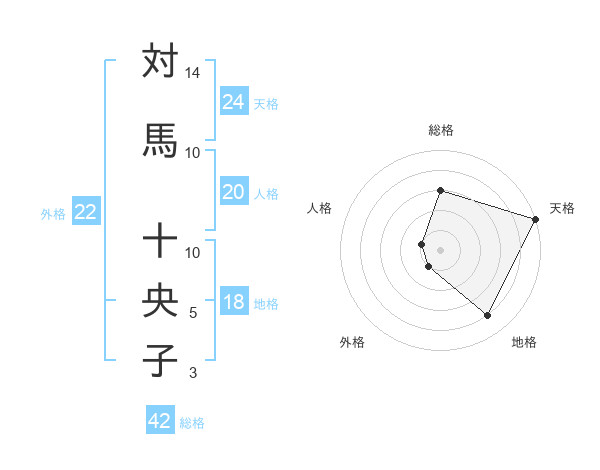 対馬 十央子さんの天格は24画の5点!
