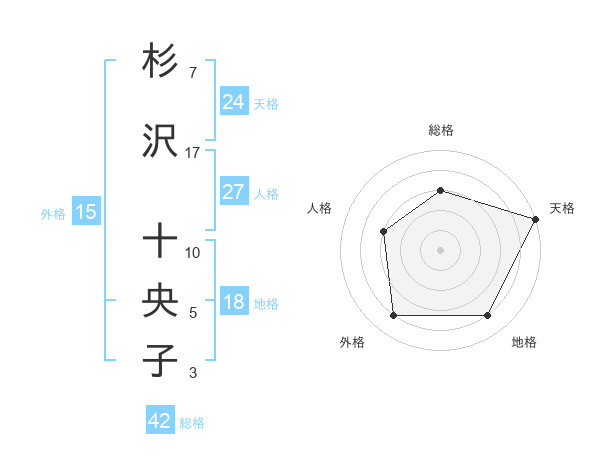 杉沢 十央子さんを姓名の画数から五運を鑑定