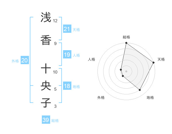 浅香 十央子さんを姓名の画数から五運を鑑定