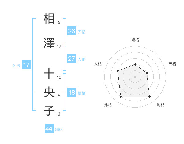 相澤 十央子さんの天格は26画の2点!