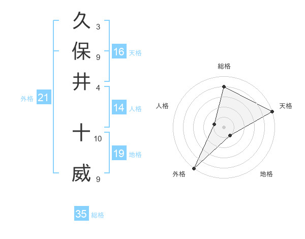 久保井 十威さんの総格は35画の4点