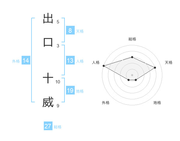 出口 十威さんの人格は13画の5点!