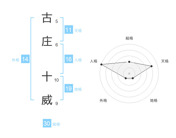 古庄 十威さんの総格は30画の2点!