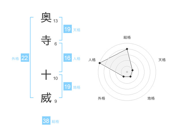 奥寺 十威さんの地格は19画の1点!