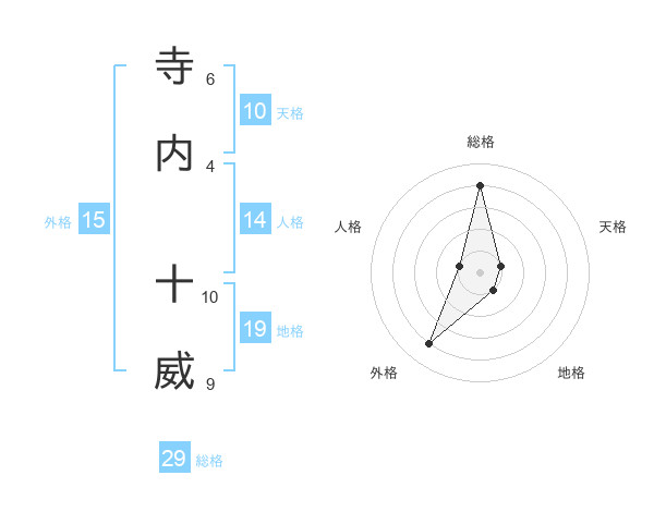 寺内 十威さんの総格は29画の4点!