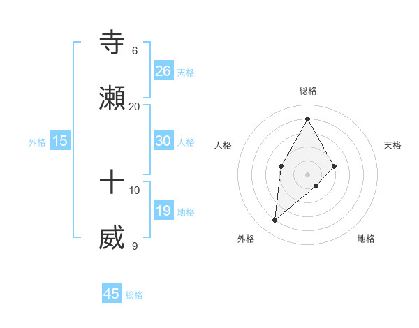 寺瀬 十威さんの総格は45画の4点!