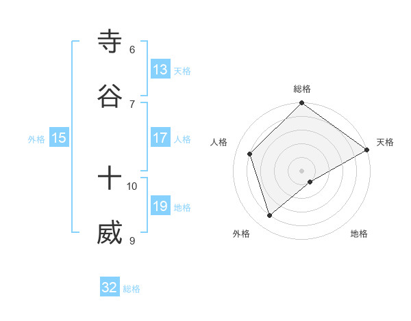 寺谷 十威さんの総格は32画の5点!
