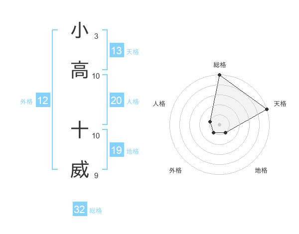 小高 十威さんの総格は32画の5点!