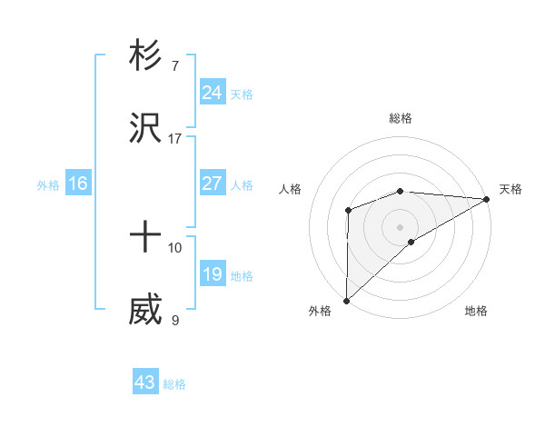杉沢 十威さんを姓名の画数から五運を鑑定